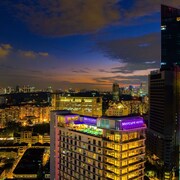 Plac Dataram Merdeka Widok na centralną część Kuala Lumpur z powietrznego mostu między wieżami Petronas Towers Kuala Lumpur (z malajskiego „błotniste ujście”) – stolica Malezji, licząca razem z przedmieściami ponad 7 milionów mieszkańców.