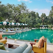 Delhi, officially the National Capital Territory (NCT) of Delhi, is a city and a union territory of India containing New Delhi, the capital of India. Lying on both sides of the Yamuna river, but chiefly to the west, or beyond its right bank, Delhi shares borders with the state of Uttar Pradesh in the east and with the state of Haryana in the remaining directions. Delhi became a union territory on 1 November 1956 and the NCT in 1995. The NCT covers an area of 1484 km2. According to the 2011 census, Delhi's city proper population was over 11 million, while the NCT's population was about 16.8 million.
