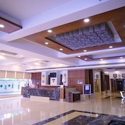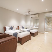 Vijayawada, formerly known as Bezawada, is the second largest city in the Indian state of Andhra Pradesh. It is located on the banks of the Krishna River surrounded by the hills of the Eastern Ghats, known as the Indrakeeladri Hills. The city is home to the important Hindu shrine of Kanaka Durga Temple. It geographically lies on the center spot of Andhra Pradesh. The city has been described as the commercial, political, cultural and educational capital of Andhra Pradesh. It is the administrative headquarters of NTR district. The Prakasam Barrage across the Krishna River connects the NTR and Guntur districts.